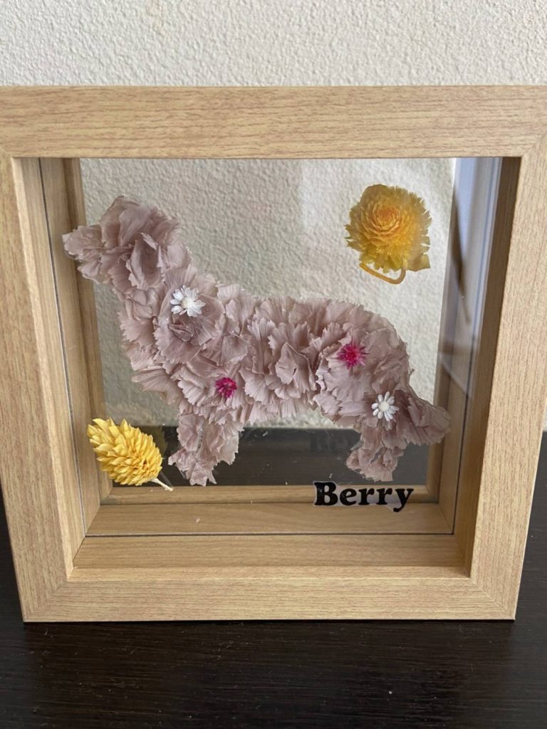 うちのわが子(犬)がかわいすぎて、せっかく花屋で働いてるのに、花を使ってなにか作れないかなーって思ったのが始まりでした。