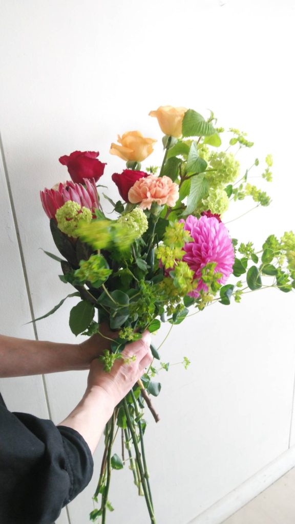 花束やアレンジメントを主にしてテーマや時期、イベントにあわせて花や資材に触れていきます